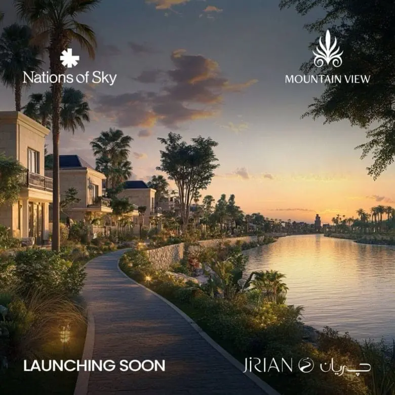 Townhouse for sale 176 meters nile corner (3 rooms – 3 bathrooms – kitchen – terrace – spacious reception) The latest projects of Mountain View Palm Hills in the heart of Sheikh Zayed, close to many places such as: Sphinx International Airport / Grand Egyptian Museum / 26 July Axis / Cairo International Airport, Advantages of investing in Jirian Palm Hills El Sheikh Zayed: (Unique location – Modern and international design – Various options in residential units – Competitive prices and flexible payment systems and it is preferable to follow the booking prices! – Amazing views – Distinctive hotel services: The project is designed to be a residential and tourist destination and is an excellent option for those wishing to rent their units in dollars in the future),An excellent option for those wishing to rent their units in dollars in the future, Jirian City New zayed services: ( integrated security and guarding – organized road network – wide parking lots – commercial areas – educational and medical facilities – direct views of the Nile – wide green spaces – integrated sports clubs – multiple swimming pools – children’s play areas – walkways and waterways)