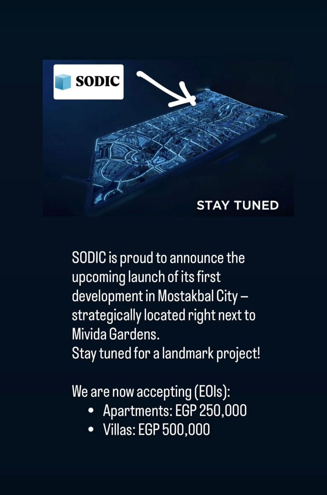 - امتداد للمشاريع الرائدة: يقع الموقع قريباً من مشاريع كبرى لمطورين آخرين، أبرزها مشروع ”ميفيدا جاردنز” (New Mivida) الذي تطوره شركة إعمار مصر داخل ”مدى سيتي” أيضاً. هذا التجاور مع مشاريع نخبوية يؤكد أن هذه القطعة الأرضية تُصنف ضمن أرقى وأهم مناطق مدينة مدى.