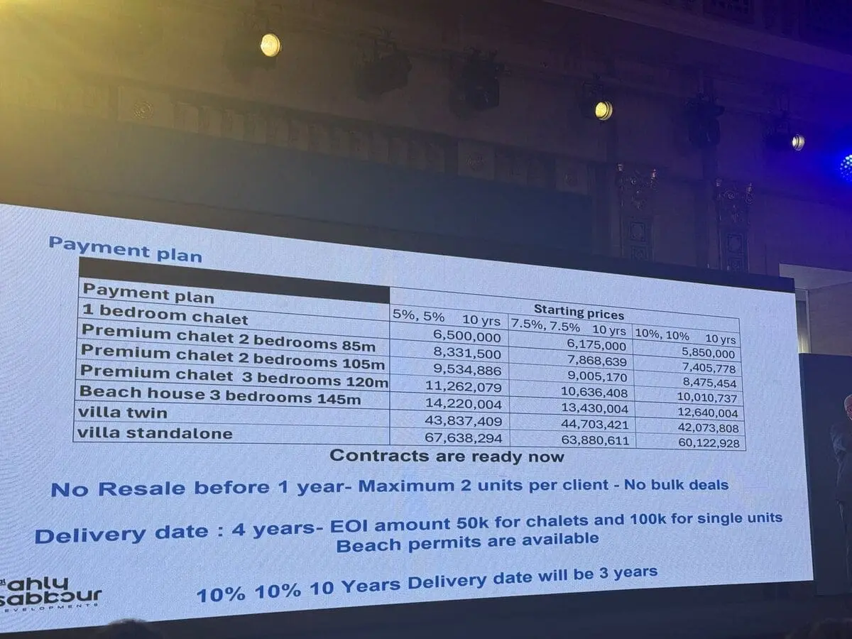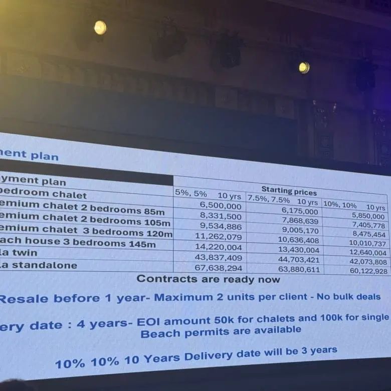 | شاليهات | 85-120 م² | 5,850,000 ج.م |