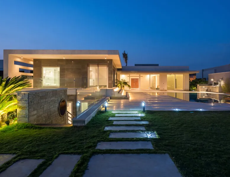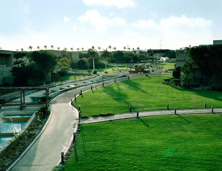 عمارة حديثة تمزج البساطة بالأناقة، دمج للعناصر الطبيعية، ممرات مشاة مرصوفة ومشجّرة، وتخطيطات مرتفعة في المرحلة الأولى لتوجيه الإطلالات نحو الأهرامات.