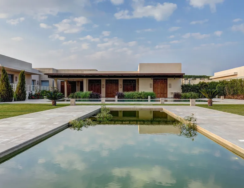 تشمل 93 فيلا نصف مفروشة + توين/تاون هاوس، بحدائق خاصة وخيارات مسبح، وتوجيه مثالي للإضاءة وإطلالات الأهرامات.