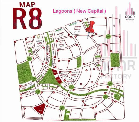 في قلب الـR8 بالعاصمة الإدارية الجديدة، بإطلالة مباشرة على البرج الأيقوني – النهر الأخضر – الحديقة المركزية، وبالقرب من مركز المؤتمرات والحي الدبلوماسي.