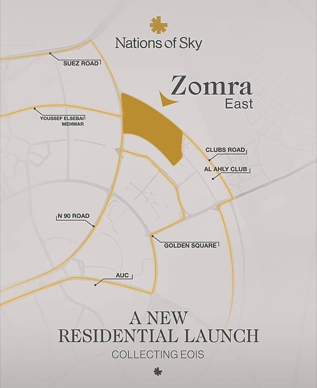 من تطوير شركة Nations of sky، مشروع Zomra East بيقدم مستوى جديد من الفخامة والراحة في قلب القاهرة الجديدة.