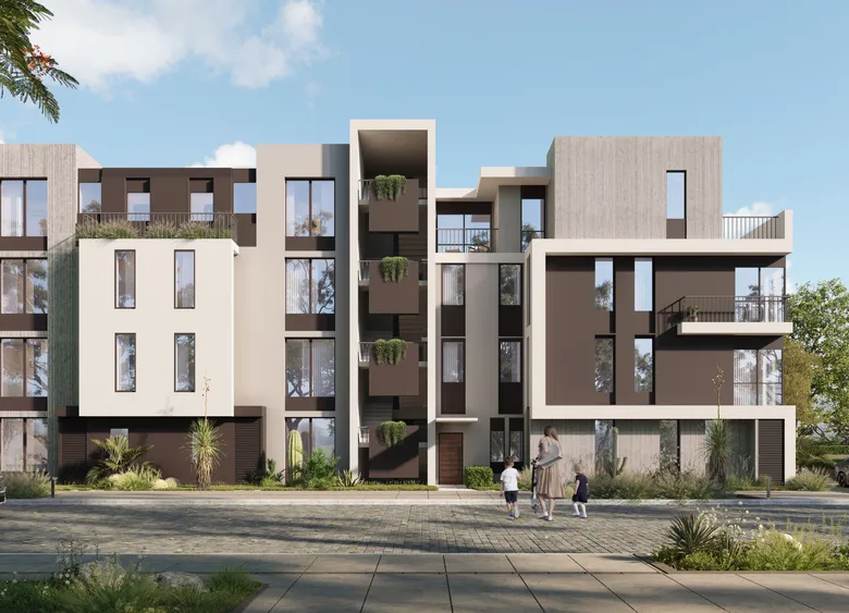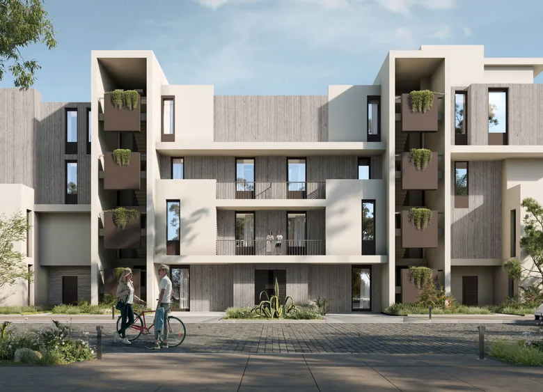 تصميم معماري حديث يدمج العناصر الطبيعية، ممرات مشاة ودراجات، ومساحات مفتوحة تشجّع أسلوب حياة صحي.