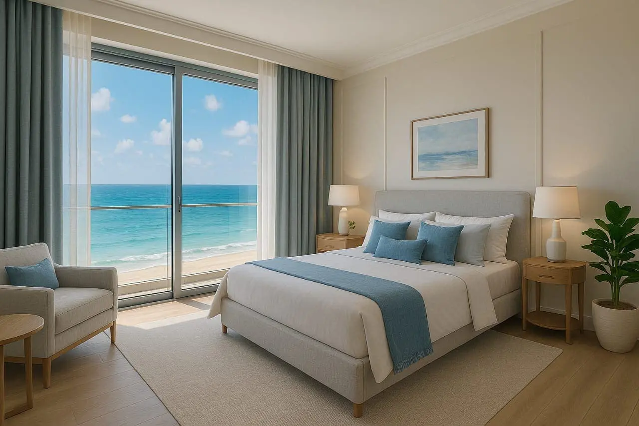 - مصمم على مصاطب تضمن رؤية البحر من كل وحدة
