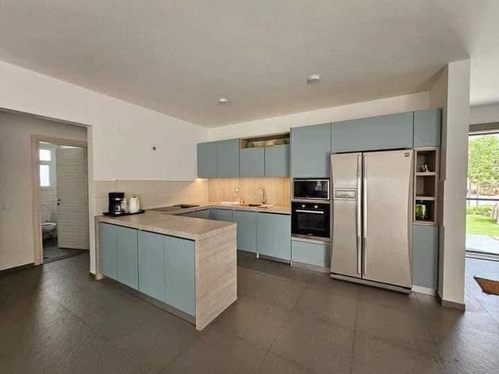 شاليه للبيع في قرية سيزن الساحل الشمالي متشطب بالتكيفات والمطبخ ڤيو مفتوح علي اللاجون