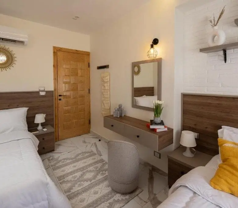 شاليه بمساحة 80 متر متشطب بالكامل بتقسيمة حلوة ( 1 غرف نوم ) + ( 1 حمام ) + ( مطبخ ) + ( تراس ) + ( رسيبشن ) موقع ذا ايلاند مارينا 5 الساحل الشمالي: في قلب مارينا 5 منطقة لسان الوزراء.