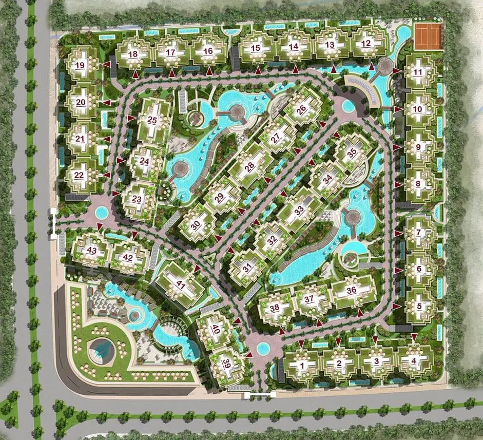 المنظور الأخضر والمائي 75% مخصصة للمسطحات الخضراء واللاندسكيب والمناظر المائية، لضمان أعلى مستوى من الهدوء والخصوصية.