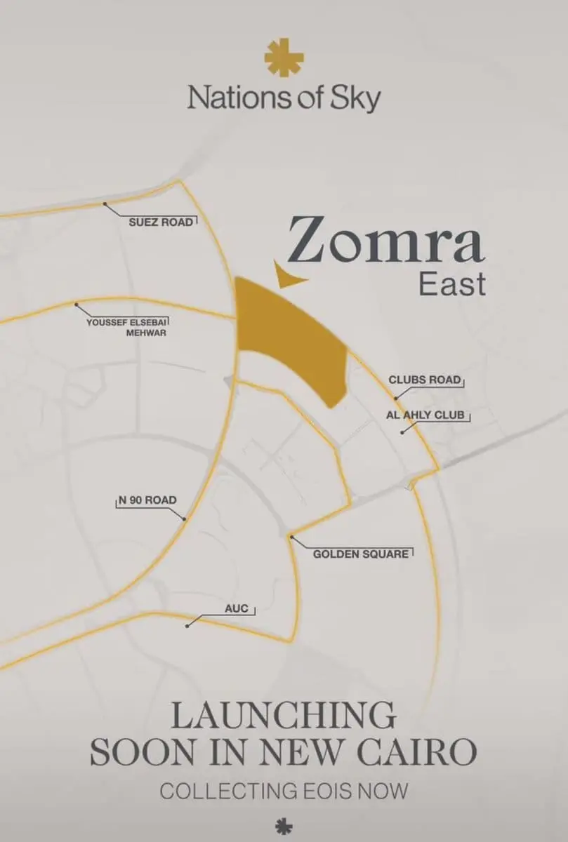 يتمتع كمبوند زمرة إيست | Zomra East بموقع استراتيجي وحيوي للغاية في القاهرة الجديدة | New Cairo وتحديداً في منطقة التجمع الخامس | Fifth Settlement . يضمن لك هذا الموقع سهولة الوصول إلى أبرز المحاور الرئيسية والمعالم الحيوية، مما يجعل حياتك اليومية أكثر سلاسة وراحة.