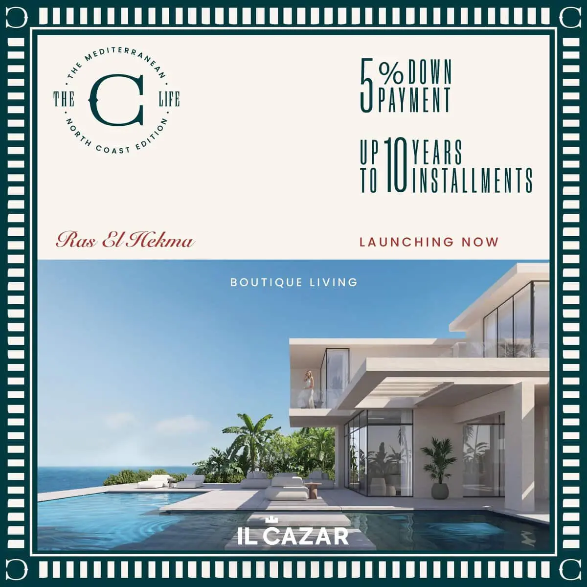 قرية ذا سي رأس الحكمة | The C Ras El Hekma هي منتجع سياحي متكامل وفخم، أطلقته شركة الكازار للتطوير العقاري في قلب الساحل الشمالي، ليمنح السكان المعنى الحقيقي للمتعة والراحة. تم تصميمها خصيصًا لتجد بها كافة أنواع الرفاهية والاستجمام، ويتكامل تصميم منتجع The C مع الطبيعة الخلابة الساحرة، مما يخلق بيئة مثالية توفر الراحة والاسترخاء. ولم يقتصر الأمر على ذلك، فقد اهتمت الشركة بتزويد المنتجع بكافة المقومات التي تجعله خيارًا مثاليًا لكل من يرغب في امتلاك منزل فاخر، أو يهتم بالاستثمار بشكل عام في رأس الحكمة.