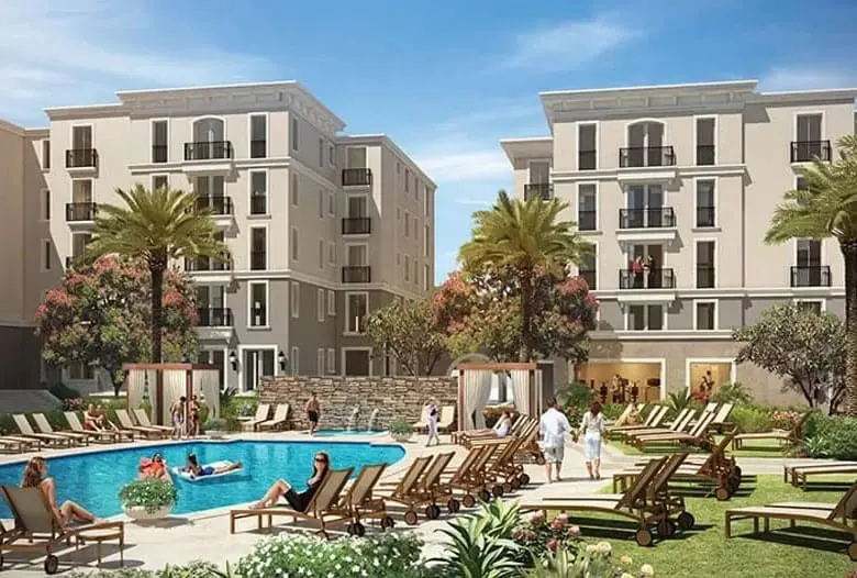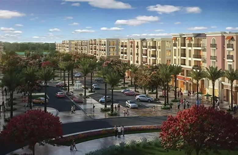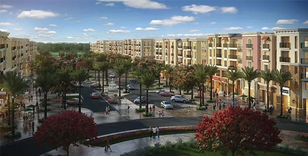 تم تصميم الكمبوند بأسلوب مستوحى من كاليفورنيا بمزيج معماري إسباني أمريكي. يمتد على مساحة 890 فدان، 80% منها مساحات خضراء وحدائق ومسطحات مائية. تشمل المناطق: