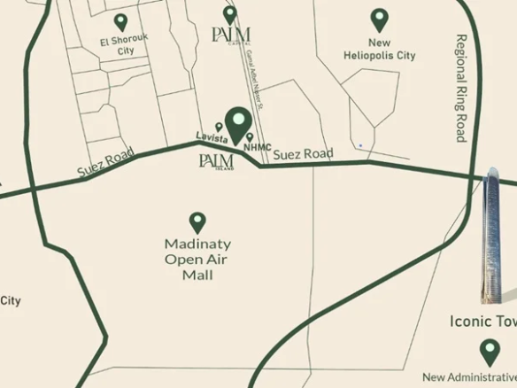 • العنوان: كمبوند بالم ايلاند, طريق السيويس , الشروق