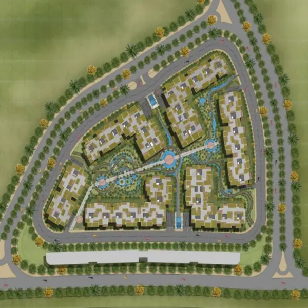 المساحة دي اتقسمت لمناطق سكنية، خدمات، لاند سكيب، ومرافق ترفيه،