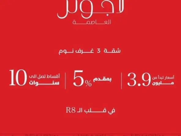 - سعر بداية تنافسي (مقارنة بوحدات داخل العاصمة) مع مقدم منخفض نسبيًا 5%.