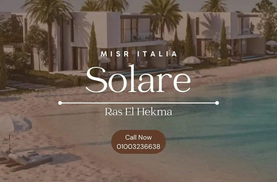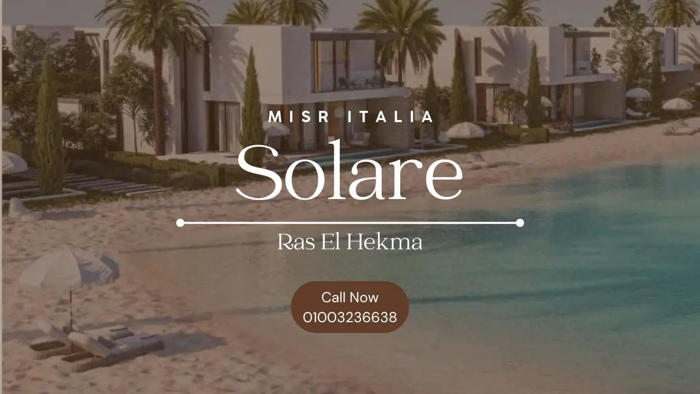 تم تأسيس مشروع مصر ايطاليا الساحل الشمالى Solare North Coast في موقع مرموق بمدينة رأس الحكمة بالساحل الشمالي، ويتميز بمكان استراتيجي وفريد من نوعه الذي يجذب العملاء. يغطي المكان مساحة واسعة مع العديد من الخدمات المتنوعة المتاحة بالإضافة إلى وحدات متنوعة في المساحة والسعر.