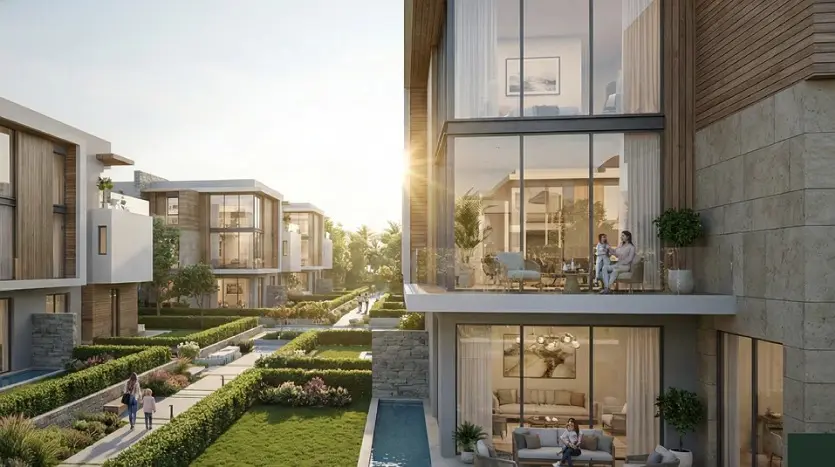 وع بمساحات خضراء ولاغونات مائية ومساحات مفتوحة لتحقيق التوازن بين الطبيعة والمعيشة. التصميم المعماري مستوحى من طراز البحر المتوسط بألوان هادئة وواجهات طبيعية.