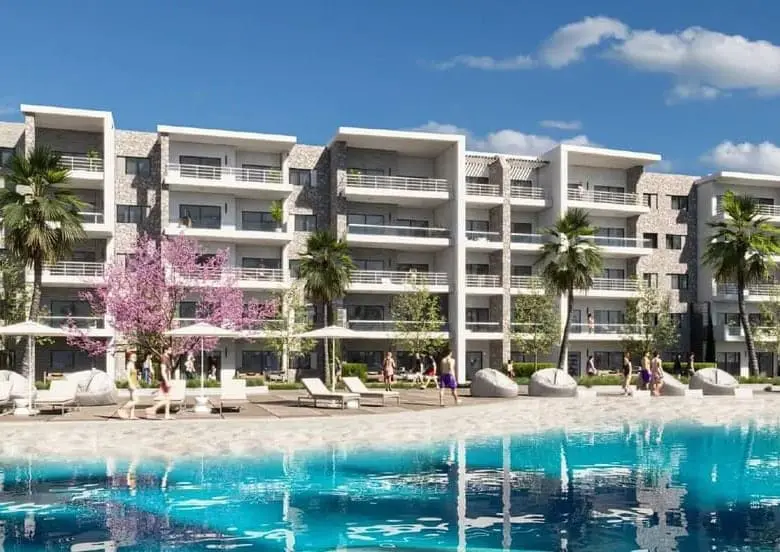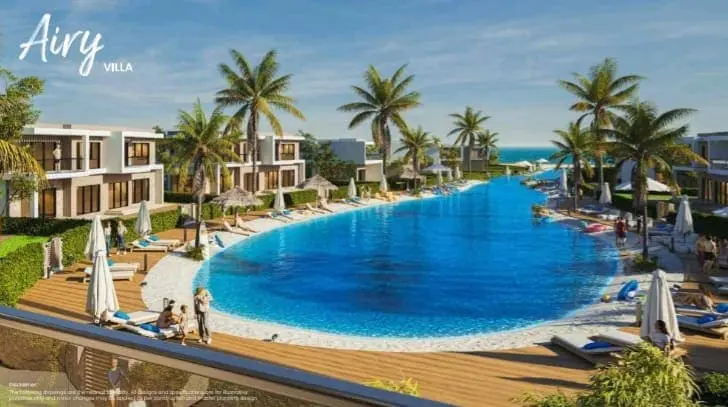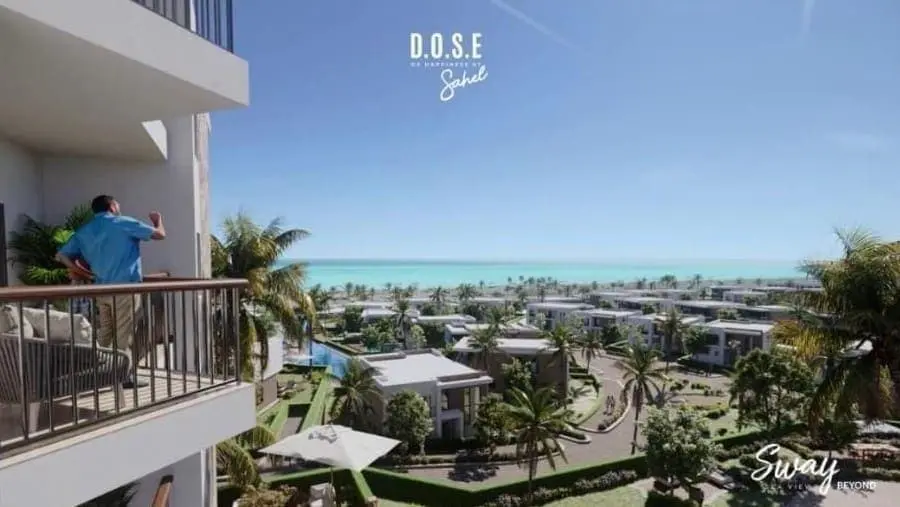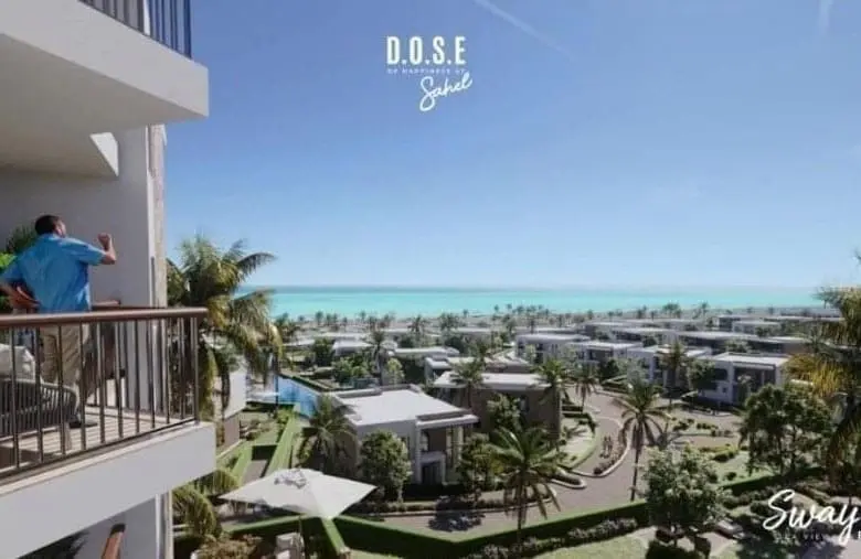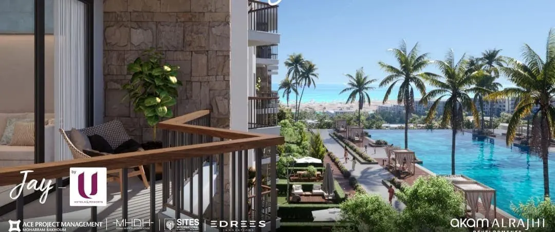 60% من الوحدات ترى البحر مباشرة، و30% بانوراما بحرية، و10% تطل على حمامات السباحة.