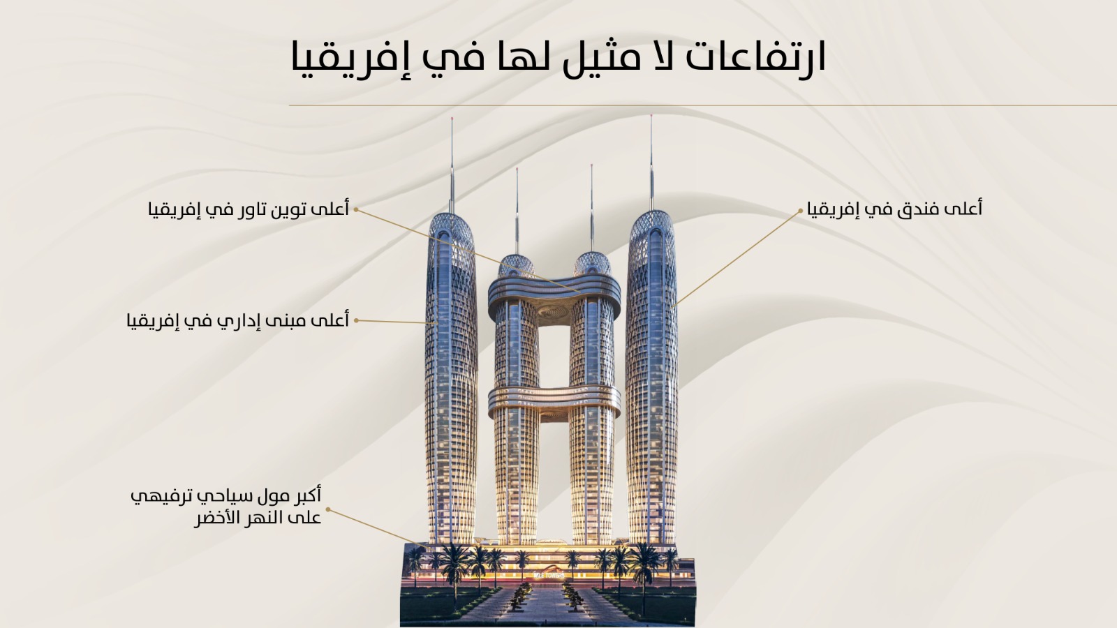 ج 3: يُعد البرج ثالث أطول ناطحة سحاب في أفريقيا (بعد البرج الأيقوني وبرج في جوهانسبرغ)، ويصل ارتفاعه إلى 256 مترًا بإجمالي 63 دورًا.